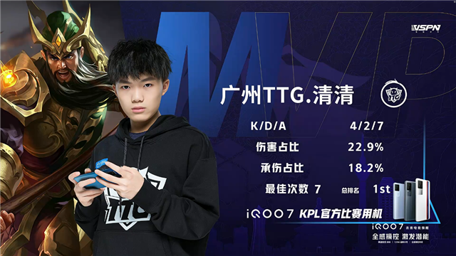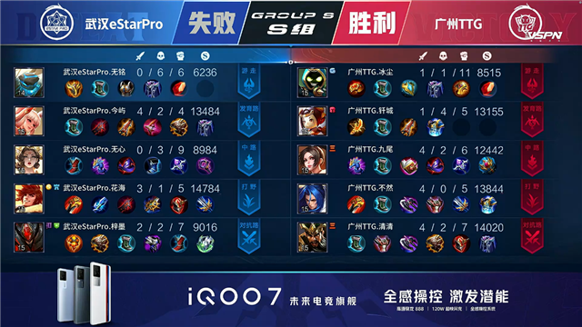 双方平稳开局,广州TTG不知火舞换线到发育路。1分06秒广州TTG拿下中路河道之灵。2分05秒广州TTG上路打出0换2。4分29秒广州TTG暴君处击杀盾山。5分49秒中路团战广州TTG击杀盾山。6分39秒武汉ES中路击杀不知火舞。6分52秒广州TTG拿下主宰。7分50秒野区团战双方1换1。10分12秒中路团战广州TTG打出2换3,关羽拿到三连决胜。10分55秒广州TTG拿下暗影暴君。12分11秒广州TTG拿下暗影主宰。12分35秒武汉ES中路击杀不知火舞。14分03秒广州TTG摧毁敌方中路二塔。15分10秒广州TTG拿下暗影暴君。15分48秒下路团战双方1换1,广州TTG摧毁敌方下路高地塔。16分12秒武汉ES中路打出0换2。16分53秒武汉ES拿下暗影主宰。17分47秒野区团战广州TTG打出1换5,不知火舞拿到三连决胜。18分03秒广州TTG摧毁水晶拿下比赛。