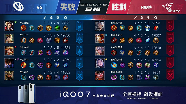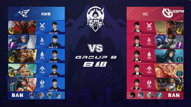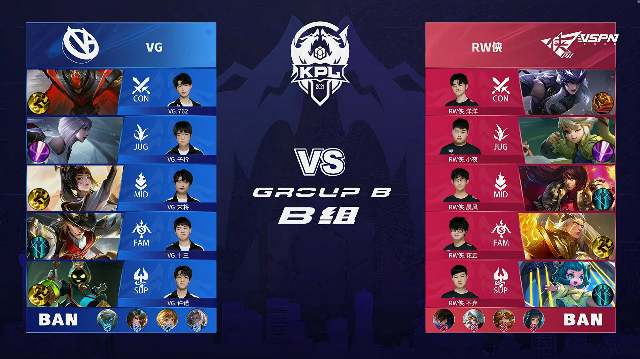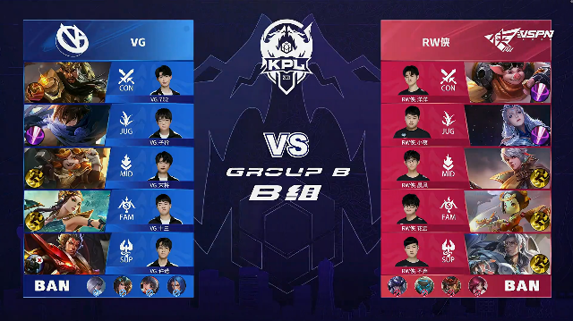 JRS直播网讯 4月16日2021KPL春季赛常规赛第四周第三日第一场比赛,由B组的VG对阵RW侠,以下是本场比赛快讯。