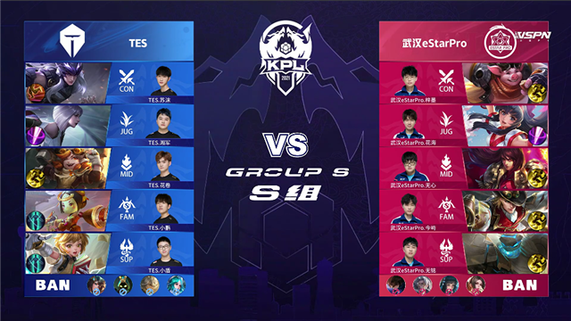 JRS直播网讯 4月11日2021KPL春季赛常规赛第三周第五日第一场比赛,由S组的武汉eStarPro对阵TES,以下是本场比赛快讯。