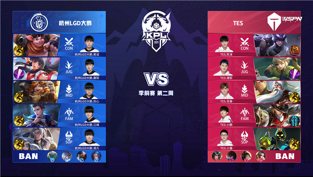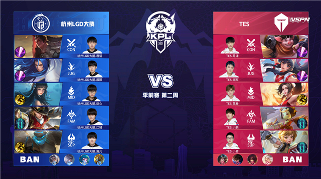 JRS直播网 3月18日2021KPL春季赛季前赛第二周第一日比赛,由杭州LGD大鹅对阵TES,以下是本场比赛快讯。