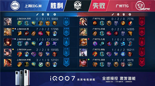 双方平稳开局,2分16秒中路团战上海EDG.M击杀澜拿到一血。2分41秒上海EDG.M拿下主宰。4分06秒上海EDG.M摧毁敌方下路外塔。4分22秒上海EDG.M拿下暴君。5分33秒双方中路1换1。6分58秒上海EDG.M拿下主宰。7分46秒中路团战广州TTG击杀盘古。7分59秒广州TTG上路击杀大乔。9分38秒广州TTG摧毁敌方下路外塔。10分43秒广州TTG抢到暗影暴君。11分38秒广州TTG摧毁敌方上路二塔。11分53秒广州TTG摧毁敌方中路二塔。12分02秒上海EDG.M上路击杀吕布。12分51秒上海EDG.M拿下暗影主宰。13分31秒上海EDG.M摧毁敌方上路二塔。15分31秒广州TTG拿下黑暗暴君,野区团战广州TTG打出1换3。17分14秒广州TTG拿下主宰。21分41秒野区团战广州TTG打出0换2。22分24秒高地团战广州TTG摧毁敌方三路高地塔,上海EDG.M击杀澜。23分16秒上海EDG.M拿下风暴龙王。24分49秒上海EDG.M摧毁敌方上路高地塔。26分36秒中路团战双方1换1。29分19秒下路团战广州TTG打出0换4。29分51秒广州TTG摧毁水晶拿下比赛。