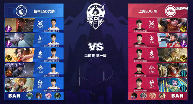 上海EDG.M禁用:澜、鲁班大师、公孙离、虞姬