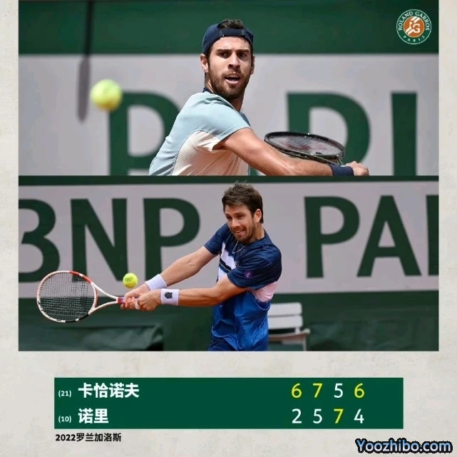 ,2022法网男单第3轮比赛,卡恰诺夫以6-2/7-5/ 5-7/ 6-4击败十号种子诺里,顺利闯入16强。2019年,卡恰诺夫在法网实现个人突破,闯进法网八强。接下来,卡恰诺夫将对阵阿尔卡拉斯。