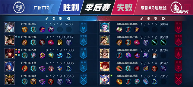 JRS直播网讯 6月6日2021KPL春季赛季后赛胜者组第一轮,由成都AG超玩会对阵广州TTG,以下是本场比赛快讯。