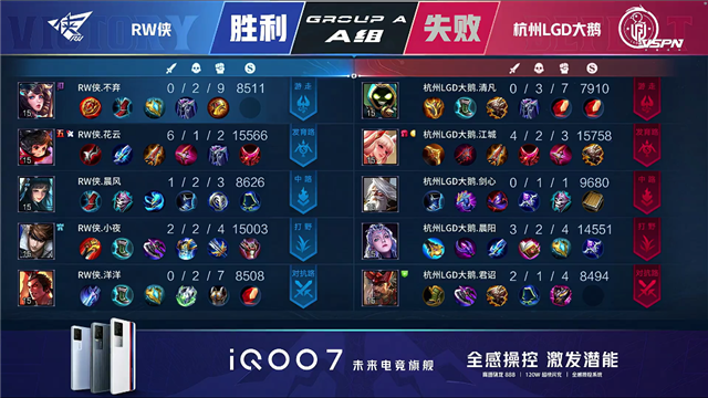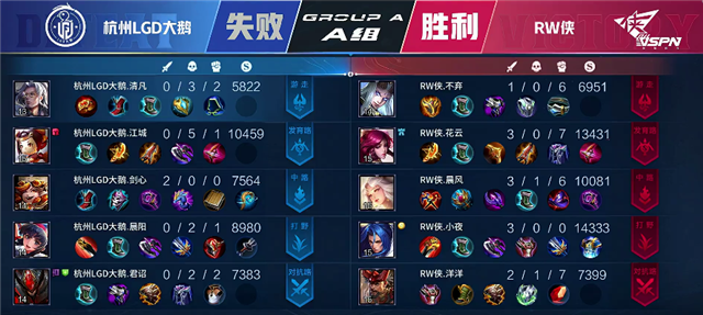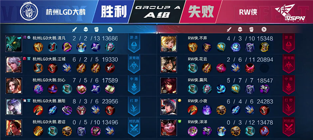 JRS直播网讯 5月1日2021KPL春季赛常规赛第六周第四日第三场比赛,由A组的杭州LGD大鹅对阵RW侠,以下是本场比赛快讯。