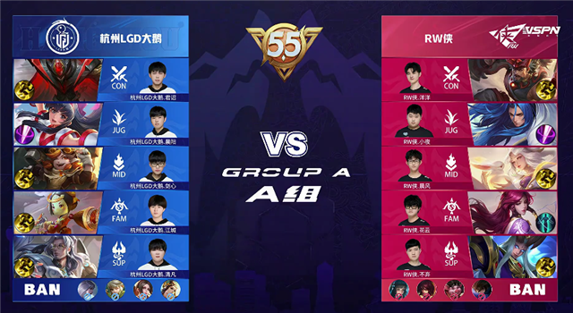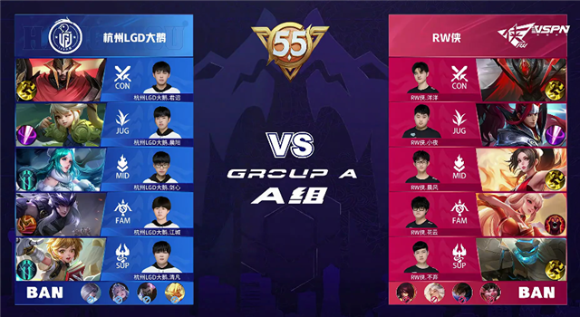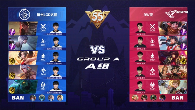 杭州LGD大鹅禁用:镜、阿古朵、不知火舞、虞姬