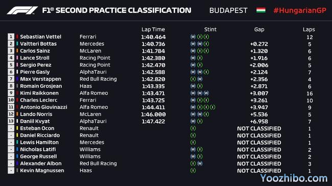 2020F1匈牙利站FP2成绩: