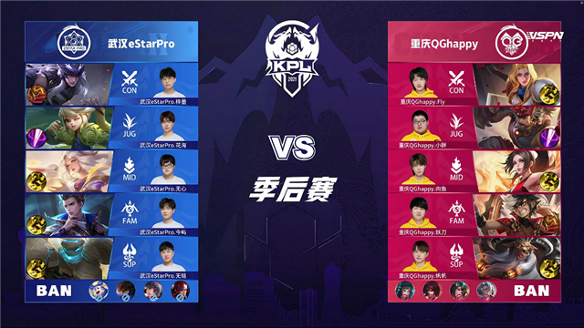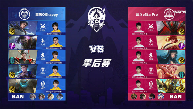 JRS直播网讯 6月12日2021KPL春季赛季后赛败者组第三轮,由武汉eStarPro对阵重庆QGhappy,以下是本场比赛快讯。