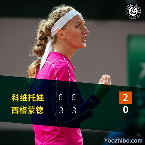 JRS直播网讯:北京时间10月7日,2020年法国网球公开赛女单1/4决赛继续进行,7号种子科维托娃以6-3、6-3完胜德国老将西格蒙德,以未失一盘的成绩时隔8年再进法网女单四强!