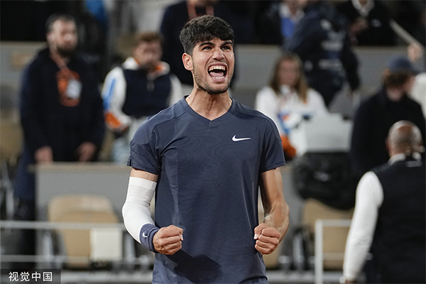 第三盘,阿尔卡拉斯在第四局成功破发,从而以6-4/7-6(5)/6-3横扫科达,顺利晋级法网男单16强。