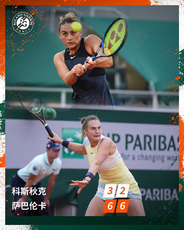 JRS直播网讯 北京时间5月28日,2023法网正赛首日正式打响,2号种子萨巴伦卡直落两盘击败了科斯秋克,尽管萨巴伦卡在第一盘率先被破发,不过她及时调整状态6-3、6-2晋级下一轮,下一轮她的对手将是白俄罗斯同胞、资格赛选手希玛诺维奇。