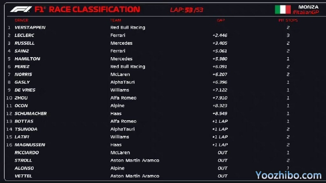 09月11日 2022F1意大利大奖赛正赛 全场录像回放