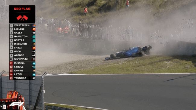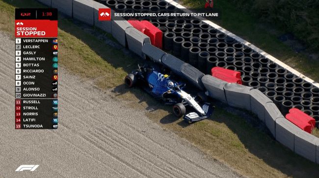 Q2剩余最后1分多钟,拉提菲在第8号弯冲出赛道撞上护墙,赛会出示红旗,并随后宣布Q2结束。