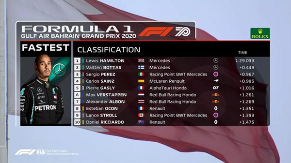 [腾讯] 2020F1巴林大奖赛第一次练习赛 车手位置
