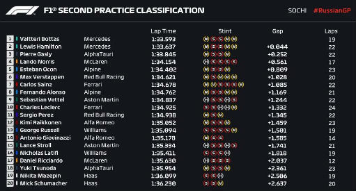 F1俄罗斯站FP2成绩: