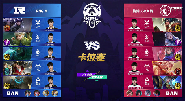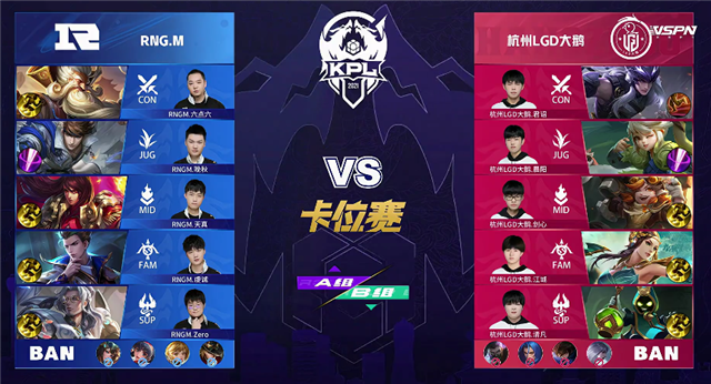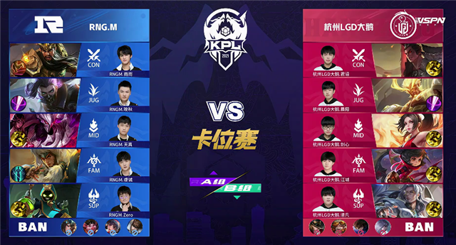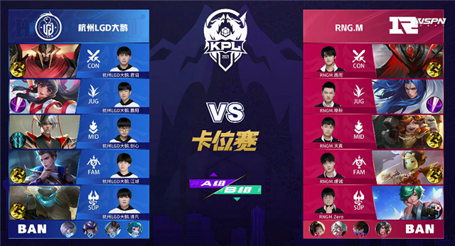 JRS直播网讯 5月11日2021KPL春季赛常规赛第八周第一日第二场A/B卡位赛,由A组杭州LGD大鹅对阵B组RNG.M,以下是本场比赛快讯。