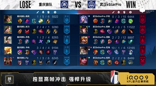 JRS直播网讯 北京时间7月10日2022年KPL夏季赛常规赛第二轮第二周第五日第三场,由重庆狼队对阵武汉eStarPro,以下是本场比赛快讯: