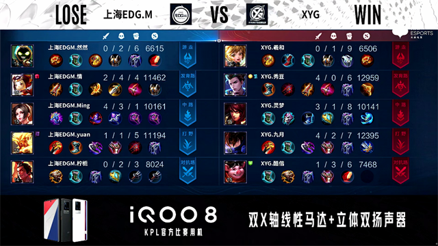 JRS直播网讯 9月24日2021年KPL秋季赛常规赛第一周第三日第三场,由上海EDG.M对阵XYG,以下是本场比赛快讯。