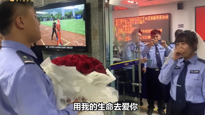 这名求婚的民警名叫韩兵辰,来自浐灞分局治安大队。在全运会期间,韩兵辰一直奋战在安保第一线。而且为了这次全运会的工作任务,韩兵辰推迟了原定于8月份进行的婚礼。在整个全运会期间,他和妻子没有见过一面。