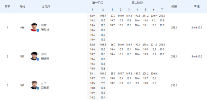 第7组第一枪,张常鸿打出10.8环,反超杨皓然0.2环;第二枪,张常鸿打出10.7环,杨皓然10.9环,两人都是252.4环进入到加赛。