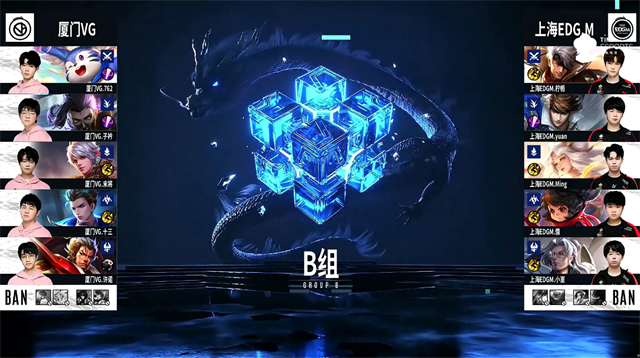 双方常规开局。1分09秒上海EDG.M拿下中路河道之灵。2分20秒上海EDG.M拿下暴君4分18秒暴君处团战上海EDG.M打出0换2。5分39秒发育路团战厦门VG打出1换2。5分55秒上海EDG.M野区击杀娜可露露。6分57秒中路上河道团战厦门VG打出0换2。7分24秒厦门VG摧毁敌方中路外、二塔。7分37秒厦门VG拿下暴君。8分28秒上海EDG.M拿下主宰。9分35秒主宰处团战上海EDG.M打出0换2。9分59秒厦门VG野区击杀猪八戒。10分24秒上海EDG.M拿下暗影主宰,厦门VG拿下暗影暴君。11分20秒暴君处团战上海EDG.M打出0换3。12分14秒野区团战厦门VG野区打出0换4,娜可露露拿到四连超凡。12分54秒厦门VG反推敌方水晶拿下比赛。