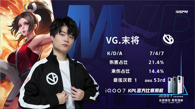 55秒,下路团,VG塔下反打打出1换2,不知火舞拿下双杀。1分53秒,上海EDG.M下路越塔击杀鲁班七号。2分11秒,VG拿下暴君。3分15秒,野区团,上海EDG.M打出0换2。4分13秒,上海EDG.M拿下先知主宰。5分12秒,上海EDG.M破掉VG下一塔,VG两人上路越塔击杀镜。5分58秒,上路团,VG打出1换2。6分50秒,VG破掉上海EDG.M下一塔。7分50秒,中路团,VG打出1换2,随后破掉上海EDG.M上二塔。8分19秒,VG破掉上海EDG.M中一塔,随后控下先知主宰。8分43秒,双方下路1换1。9分03秒,VG破掉上海EDG.M下二塔。9分33秒,野区团,VG鲁班七号拿下双杀。10分26秒,VG拿下暗影暴君。10分37秒,双方团,VG打出1换3。11分38秒,VG拿下暗影主宰。12分28秒,VG破掉上海EDG.M中二塔。13分31秒,下路团,上海EDG.M击杀廉颇,但VG娜可露露带掉上海EDG.M上高地。14分37秒,VG拿下暗影主宰。15分13秒,VG破掉上海EDG.M下高地。16分11秒,VG控下暗影主宰,下路团战双方1换1。16分44秒,上海EDG.M中路击杀廉颇。17分31秒,河道团,VG打出2换3。18分51秒,VG拿下暗影暴君。19分18秒,上海EDG.M击杀娜可露露。20分45秒,双方团,VG打出1换5团灭对手,鲁班七号拿下三杀。21分26秒,VG中路一波摧毁上海EDG.M水晶拿到赛点。