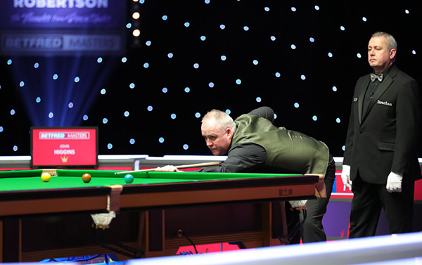 第5局比赛中,希金斯延续了上一局的围球手感,长台上手后打出单杆98分制胜,连胜两局后总分3-2反超。第6局中,希金斯安全球失误漏中袋,颜丙涛打进红球随后推进中袋绿球上手,围球连得28分后中袋失误,此后希金斯连续获得上手机会,零敲碎打73-28超分拿下,总分来到4-2领先。