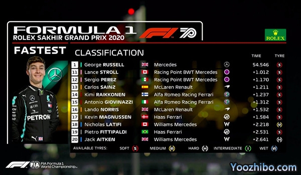 2020F1萨基尔大奖赛第一次练习赛 全场录像回放