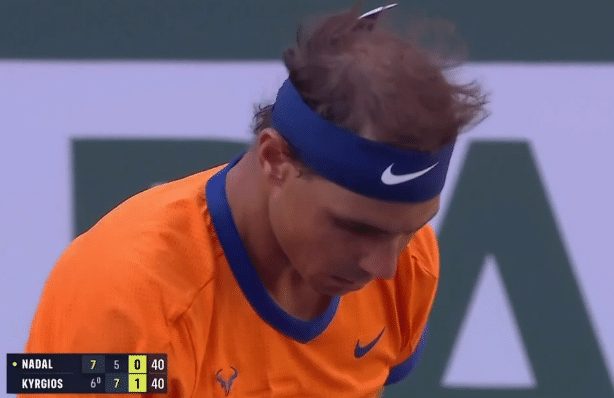 决胜盘,克耶高斯在第2局错失破发点,随后的第5局挽救两个破发点,双方打到3-3平。关键的第7局,克耶高斯出现波动,在破发点上送出双误,惨遭破发。纳达尔保持优势,最终6-4拿下第三盘,晋级4强。