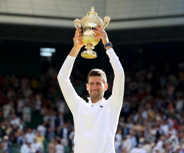 JRS直播网讯 7月10日讯 2022年第三项大满贯赛事温布尔登网球公开赛,在全英草地俱乐部进入到最后一个比赛日的争夺。万众瞩目的男单决赛当中,头号种子、温网6冠王德约科维奇4-6、6-3、6-4、7-6(3)逆转尼克-克耶高斯,职业生涯首次击败对手的同时,携温网男单28连胜实现了温网四连冠,这也是德约科维奇职业生涯的第21个大满贯男单冠军,他也成为了历史上第一位在两个不同大满贯都拿到7个及以上冠军的球员,温网7冠的成绩也追平了威廉-伦肖和皮特-桑普拉斯。全场比赛耗时3小时04分。