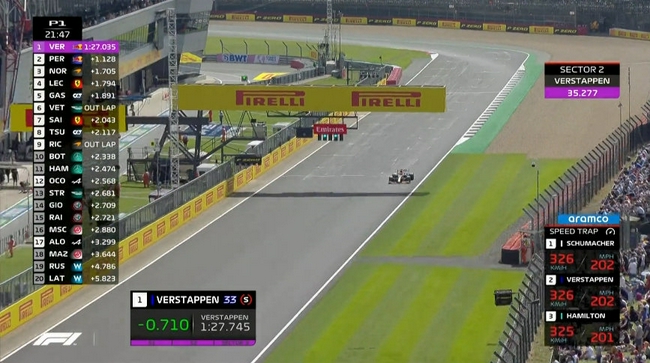 JRS直播网讯 北京时间7月16日晚,2021F1英国大奖赛第一次自由练习赛在银石赛道战罢。红牛车手维斯塔潘以1分27秒035的成绩排名第一,诺里斯落后0.779秒排名第二,而且他的成绩是使用中性胎做出的。汉密尔顿排名第三,落后维斯塔潘0.780秒。P4-P10分别为:勒克莱尔、博塔斯、塞恩斯、维特尔、佩雷兹、里卡多和奥康。梅奔和法拉利包揽了第三至第六名。本站排位赛将于北京时间7月17日凌晨01:00进行。