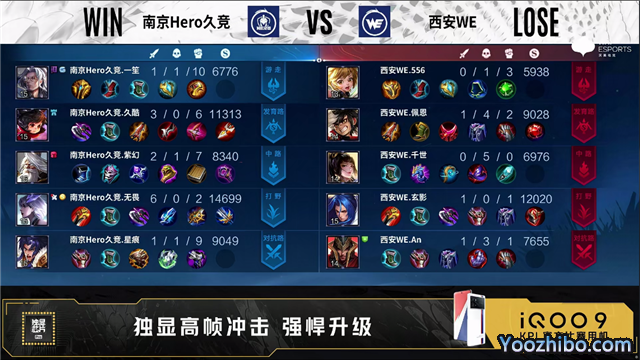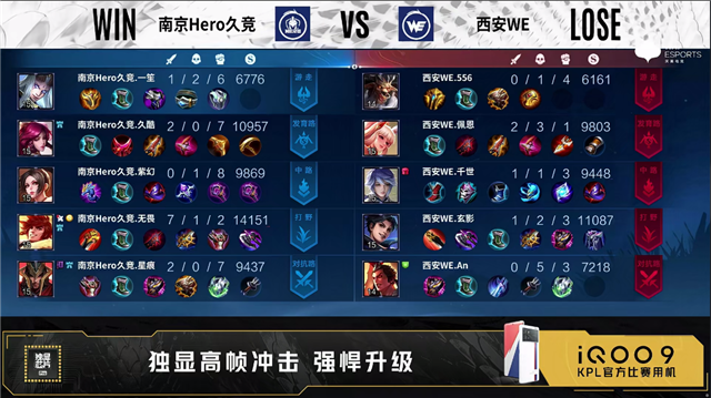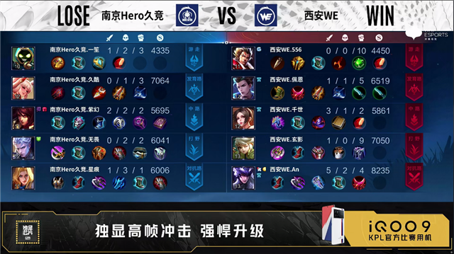 JRS直播网讯 北京时间7月3日2022年KPL夏季赛常规赛第二轮第一周第四日第一场,由南京Hero久竞对阵西安WE,以下是本场比赛快讯: