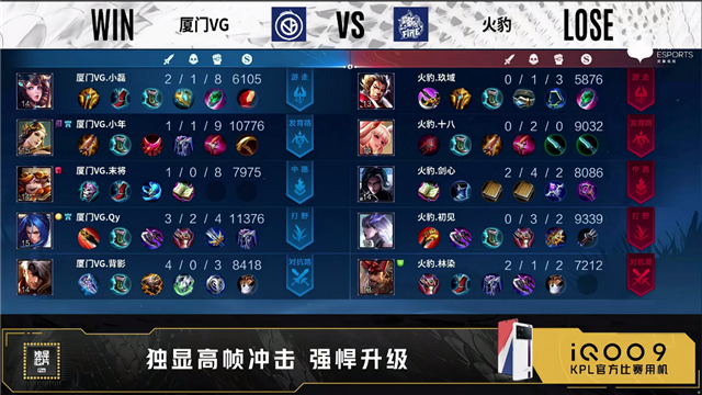 JRS直播网讯 北京时间07月01日2022年KPL夏季赛常规赛第二轮第一周第二日第一场,由厦门VG对阵火豹,以下是本场比赛快讯:
