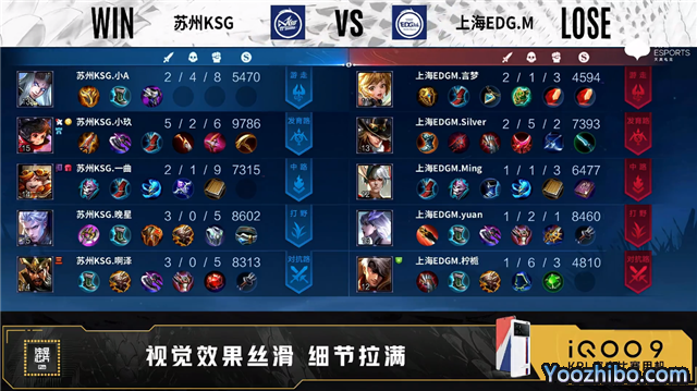 开局上海EDG.M孙尚香中路抢线。2分17秒苏州KSG拿下主宰,上海EDG.M拿下暴君。4分37秒苏州KSG主宰处打出0换2。5分13秒苏州KSG中路击杀孙尚香。5分27秒上海EDG.M中路击杀暃。10分23秒上海EDG.M中路打出0换2。12分18秒上海EDG.M摧毁敌方中路二塔。13分40秒双方野区1换1。15分01秒苏州KSG孙膑抢到暗影主宰。16分32秒中路团战上海EDG.M打出1换5,孙尚香拿到三连决胜。16分56秒上海EDG.M摧毁敌方水晶拿下比赛。