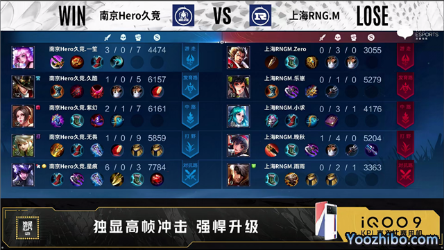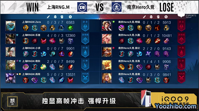 南京Hero久竞选用:不知火舞,阿古朵,马超,马可波罗,瑶