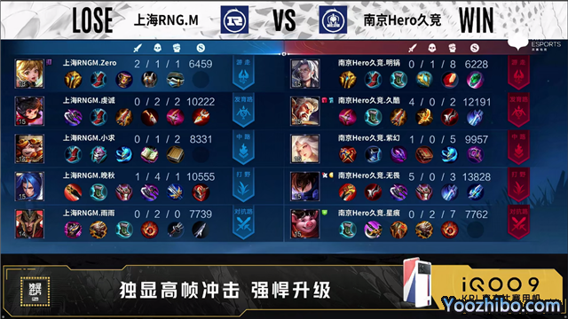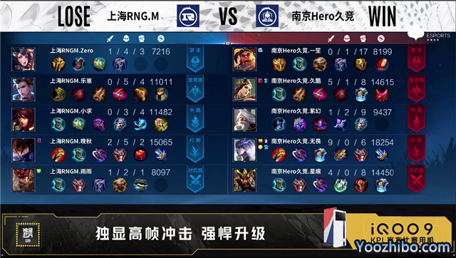 开局双方选择换线。2分16秒南京Hero久竞拿下先知主宰。3分16秒双方中路1换1。5分10秒上海RNG.M拿下暴君。5分16秒南京Hero久竞摧毁敌方对抗路外塔。6分13秒上海RNG.M中路击杀鲁班大师,随后摧毁敌方中路外塔。7分50秒上海RNG.M摧毁敌方对抗路外塔。8分14秒上海RNG.M拿下主宰。9分40秒南京Hero久竞摧毁敌方对抗路二塔。9分50秒南京Hero久竞野区击杀橘右京。10分16秒南京Hero久竞拿下暗影主宰。12分04秒中路团南京Hero久竞打出0换2。12分30秒南京Hero久竞拿下暗影暴君。12分43秒南京Hero久竞摧毁敌方发育路外塔。12分55秒南京Hero久竞摧毁敌方发育路二塔。13分20秒南京Hero久竞中路击杀沈梦溪。13分32秒南京Hero久竞摧毁敌方对抗路高地塔。14分06秒南京Hero久竞摧毁敌方中路高地塔。14分25秒南京Hero久竞拿下暗影主宰。15分13秒南京Hero久竞摧毁敌方发育路高地塔。15分35秒高地团南京Hero久竞打出0换4。15分49秒南京Hero久竞摧毁水晶拿下比赛。