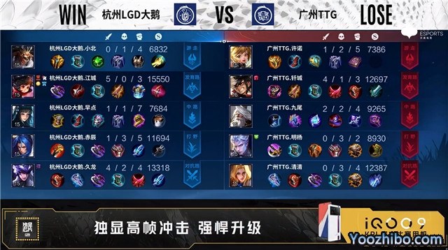杭州LGD大鹅选用:马超、橘右京、西施、李元芳、牛魔