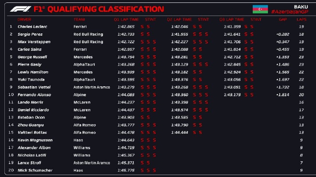 JRS直播网讯 2022年F1阿塞拜疆大奖赛排位赛在巴库赛道结束,法拉利车队勒克莱尔凭借Q3最后一圈的完美发挥,以0.282秒的优势拿到赛季第六杆!他也成为首次在巴库城市赛道多次拿到杆位的车手!红牛车队佩雷兹和维斯塔潘分列二三位。