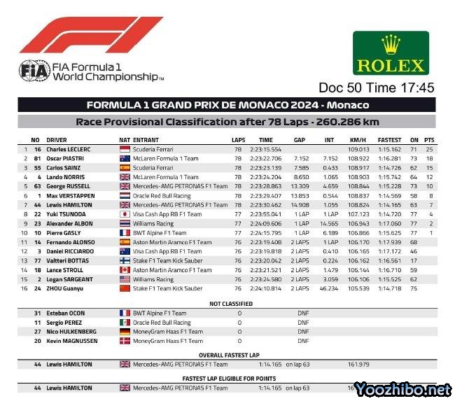 JRS直播网讯 2024年F1摩纳哥大奖赛正式比赛在蒙特卡洛赛道结束,法拉利车手勒克莱尔在摩纳哥主场实现Pole-to-Win,F1生涯首次在主场夺冠。这是他本赛季首个分站冠军,也是F1生涯第六个分站冠军! 皮亚斯特里收获亚军,收获生涯第三次领奖台!塞恩斯季军!
