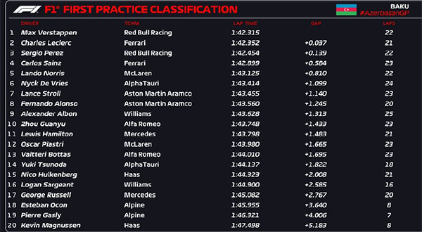 04月28日 F1阿塞拜疆大奖赛第一次练习赛 全场录像回放