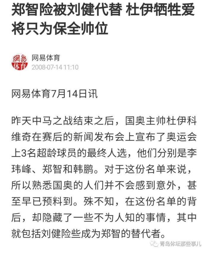 JRS直播网4月16日讯 近日,青岛队正式公布了新赛季大名单,老将刘建也在其中,今日,记者孙飞在其公众号平台透露,刘建因当初年龄改大问题,差几个月无法参加08年奥运会,被郑智替代,这也成了他一辈子的遗憾。