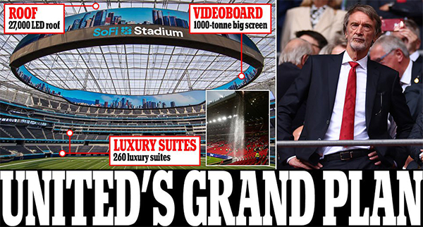 曼联老板拉爵说过,他更愿意新建一座球场取代现在的梦剧场,可能使用西看台之后的土地。计划尚未最终确定,但俱乐部官员已经从世界各地的许多类似项目中寻求灵感,特别是从洛杉矶的索菲体育场(SoFi Stadium)身上。