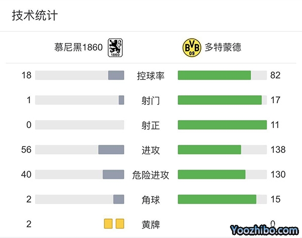 全场比赛结束,多特蒙德3-0慕尼黑1860。