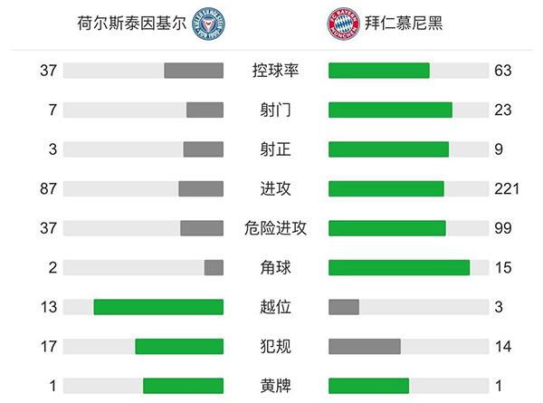 查看:基尔高士丁vs拜仁慕尼黑 全场录像技术统计: