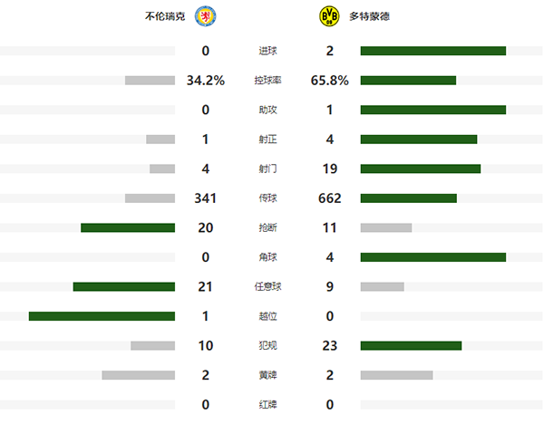 查看:布伦瑞克vs多特蒙德 全场录像技术统计: