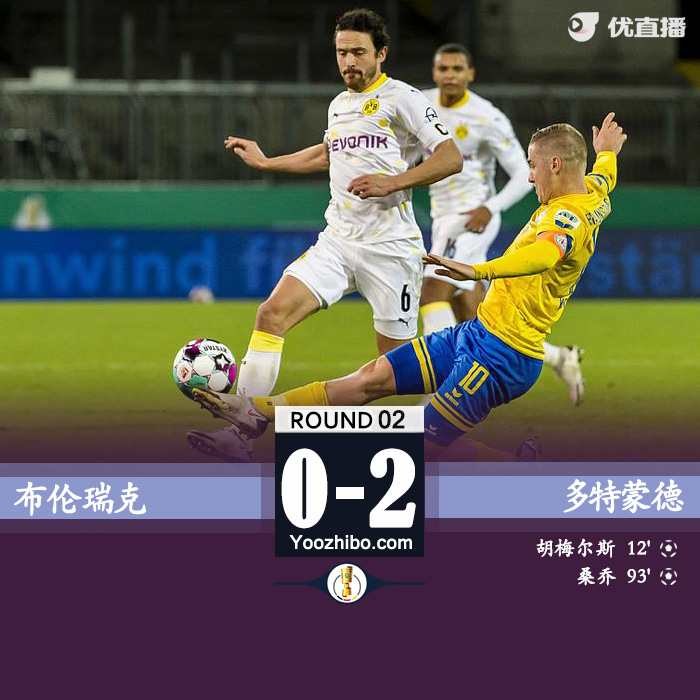 JRS直播网讯:北京时间12月23日凌晨3:00分,德国杯第二轮,多特蒙德在客场对阵布伦瑞克。上半场,胡梅尔斯帮助多特破门,半场大黄蜂1-0领先;下半场,双方各有攻守,终场前桑乔扩大比分优势,最终多特在客场2-0战胜布伦瑞克晋级下一轮。