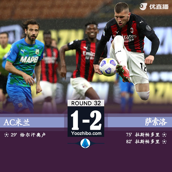 JRS直播网4月22日讯 北京时间4月22日00:30,意甲联赛第32轮AC米兰主场面对萨索洛。上半场比赛,莱奥多次杀入禁区获良机,恰尔汗奥卢右脚兜射破门,达洛特贡献关键解围,半场比分为1-0。下半场比赛,萨索洛替补上场的拉斯帕多里扳平比分,并且打入制胜一球。全场比赛战罢,米兰主场1-2萨索洛。