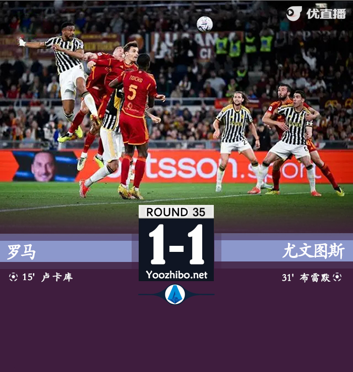 JRS直播网讯:北京时间5月6日2:45,意甲第35轮罗马主场迎战尤文。上半场,卢卡库门前补射帮助罗马首开记录;基耶萨助攻布雷默头球扳平,下半场,基耶萨击中立柱。最终,罗马1-1战平尤文,多赛2场领先排名第6的亚特兰大3分。尤文遭遇意甲4连平。
