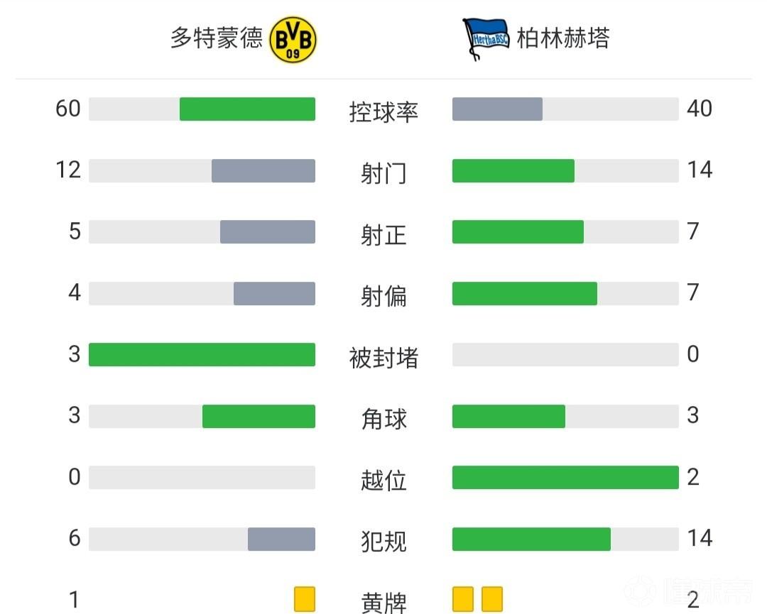 全场比赛结束,多特蒙德4-1柏林赫塔。