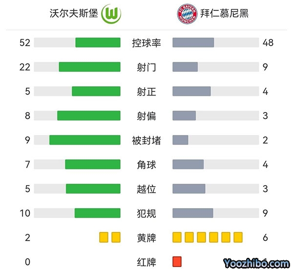 全场比赛结束,最终十人拜仁客场4-2狼堡。
